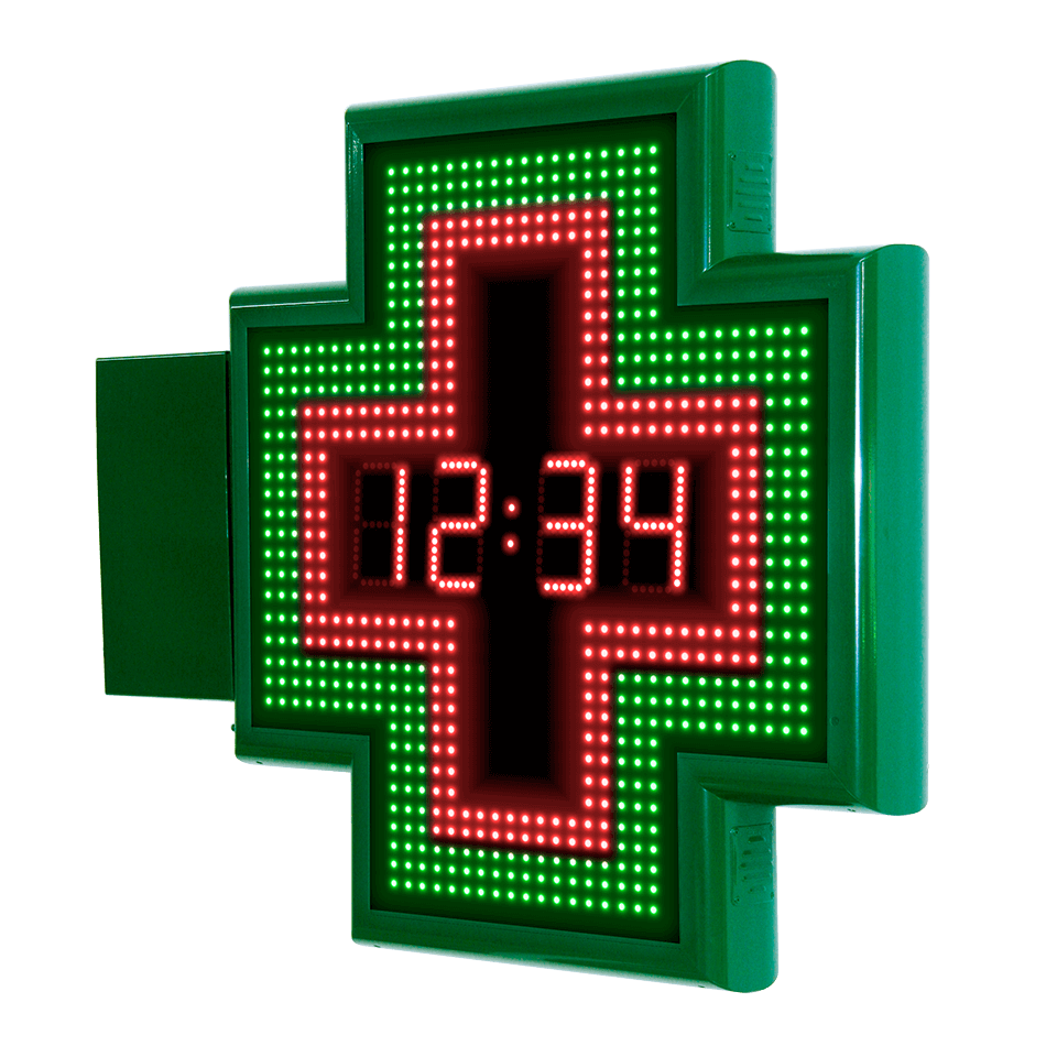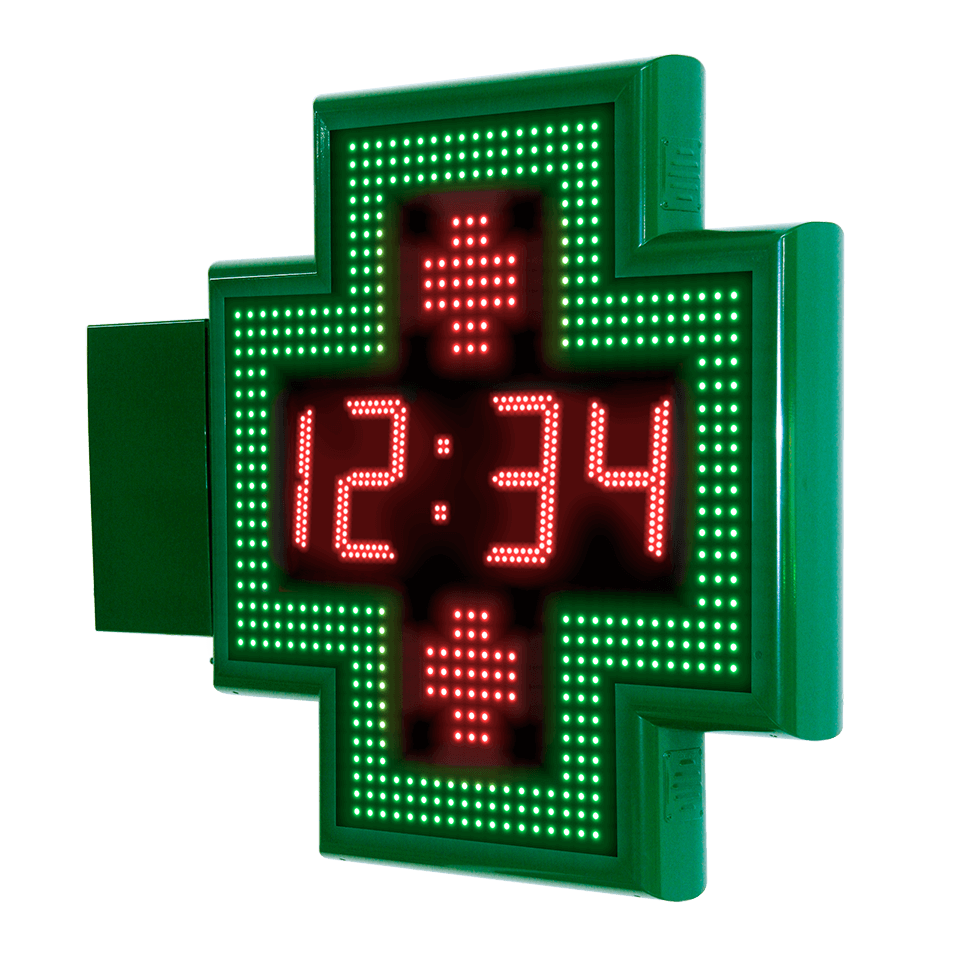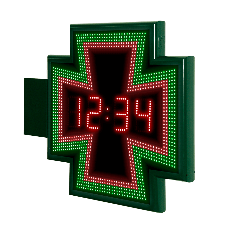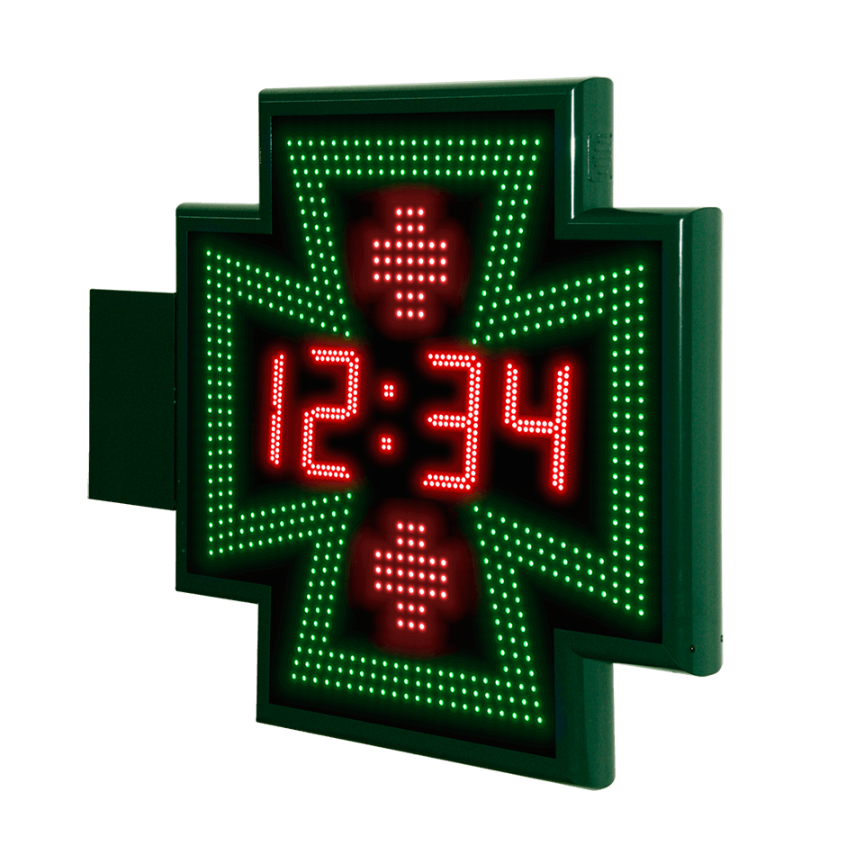 Cruz de farmacia de 80cm con orla recta, reloj-temperatura y WiFi – R10 R11 R12 R13