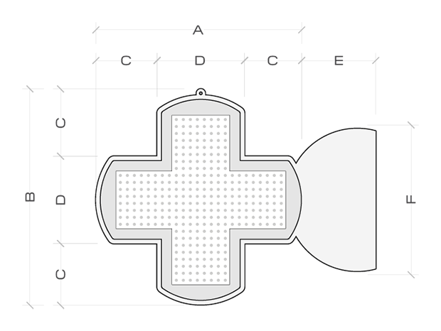 Cruz para farmacia de chasis verde junto con un exclusivo perfil UltraSlim de 4cm y unas medidas de 47cm de alto/ancho.