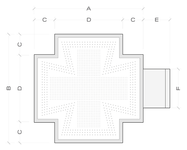 Dicha cruz está formada por un centro de LEDs rojos con tres orlas exteriores. Las orlas pueden estar fijas o realizar animaciones con varios niveles de selección de movimientos.