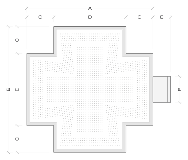 Cruz farmacéutica de orla verde y centro rojo que tiene unas dimensiones de 171,2. de ancho/alto y un perfil curvo de 10,7 cm.