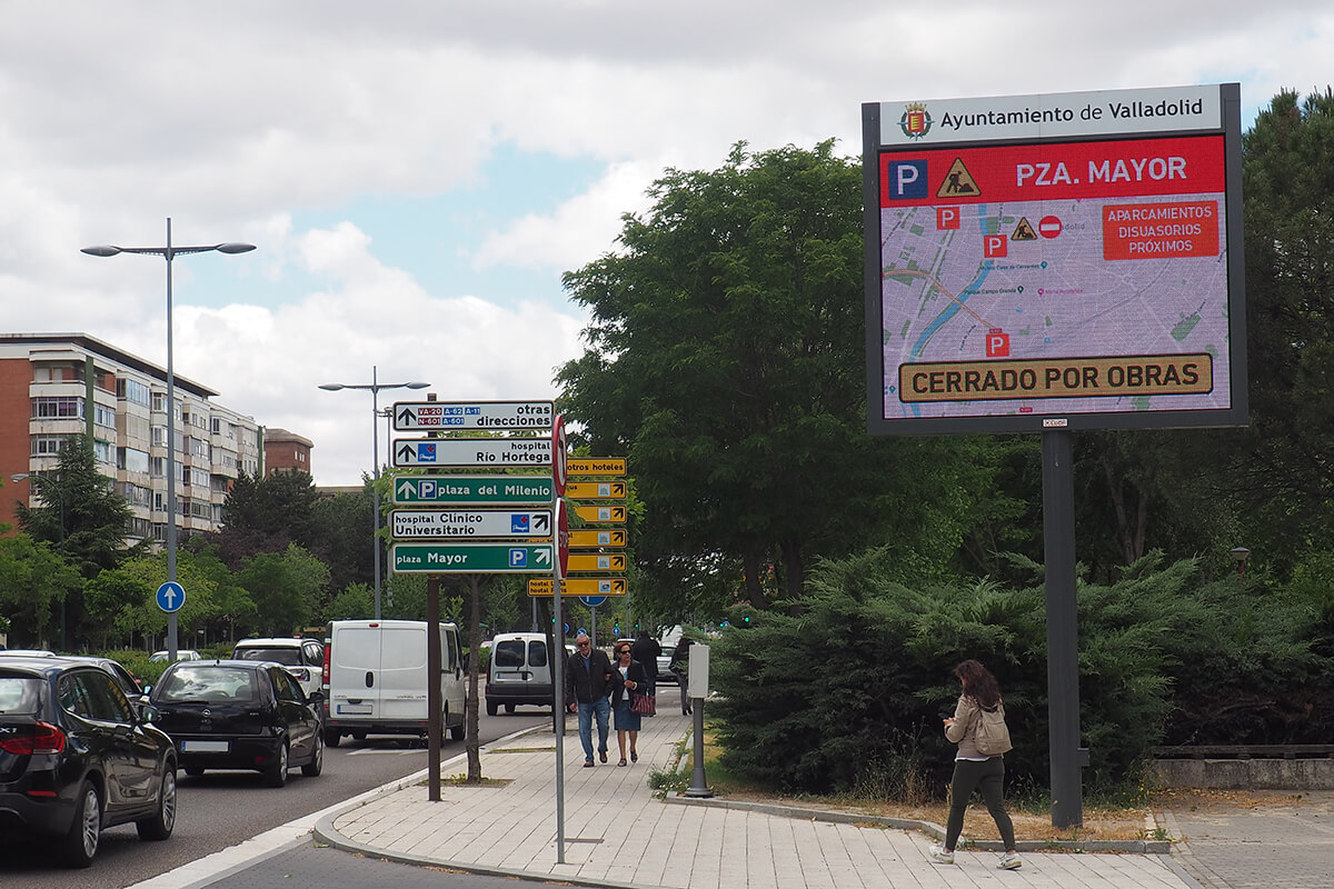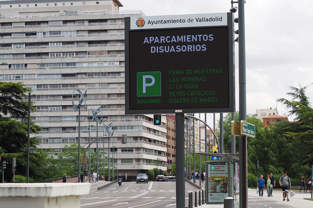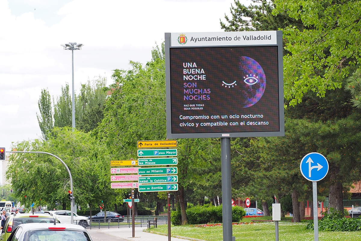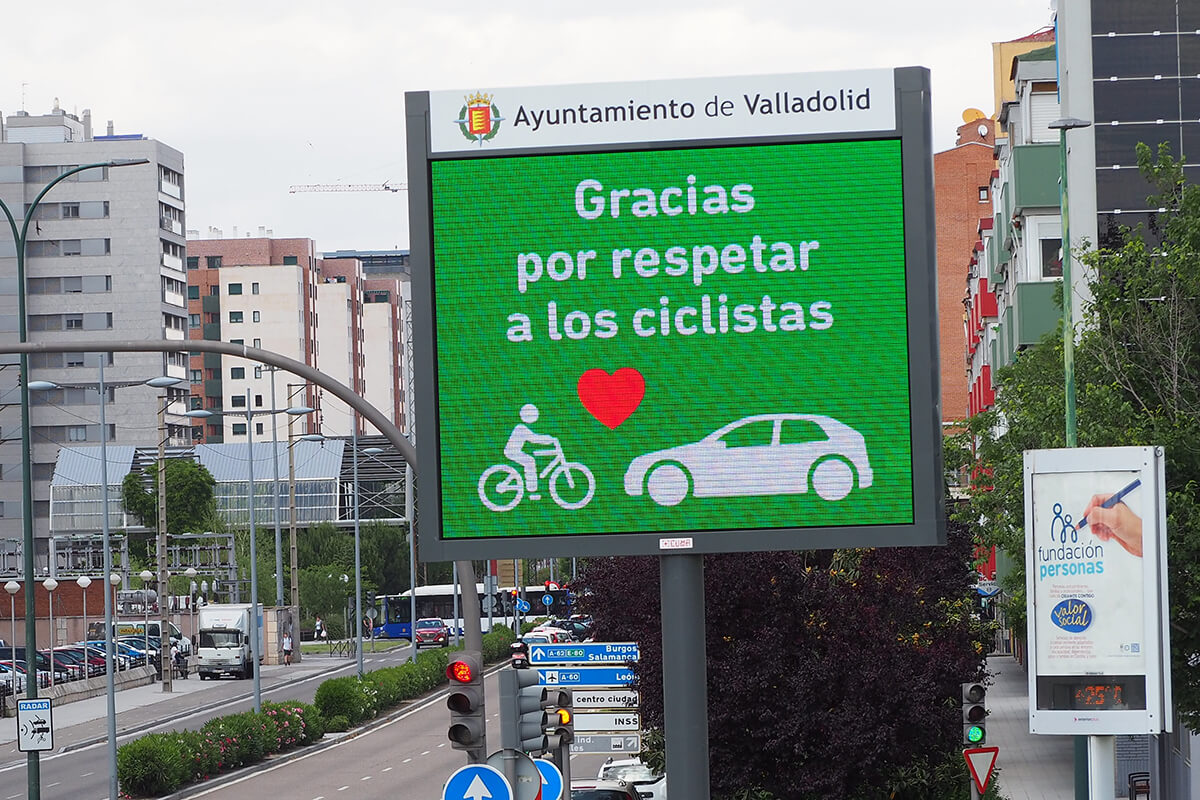 El Ayuntamiento de Valladolid quiso renovar la imagen de su ciudad e instaló un total de 14 pantallas LED para información ciudadana p10 Full Color. Todas ellas, con las mismas características: 3,3 metros de ancho x 3 metros de alto, puertas traseras lacadas en color blanco y poste circular de 27 cm de diámetro y 3,7 metros de altura. En definitiva, un trabajo costoso que llevó casi más de dos meses de trabajo en fábrica.