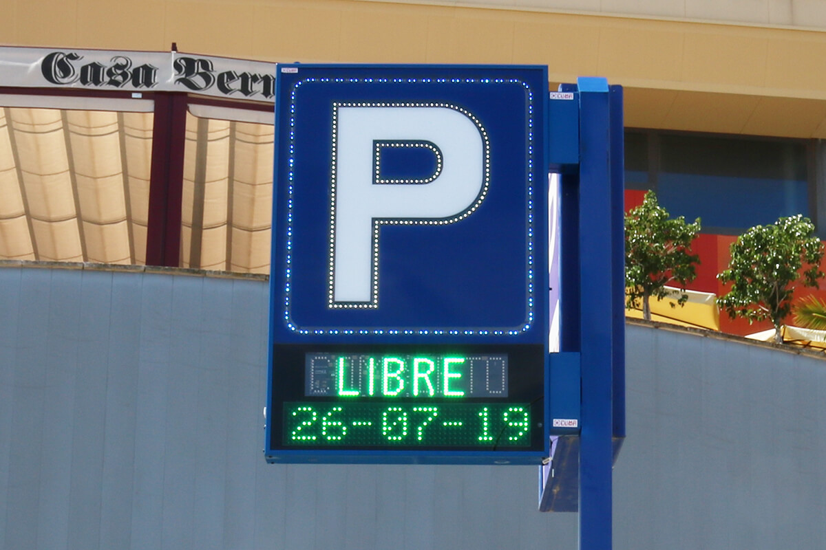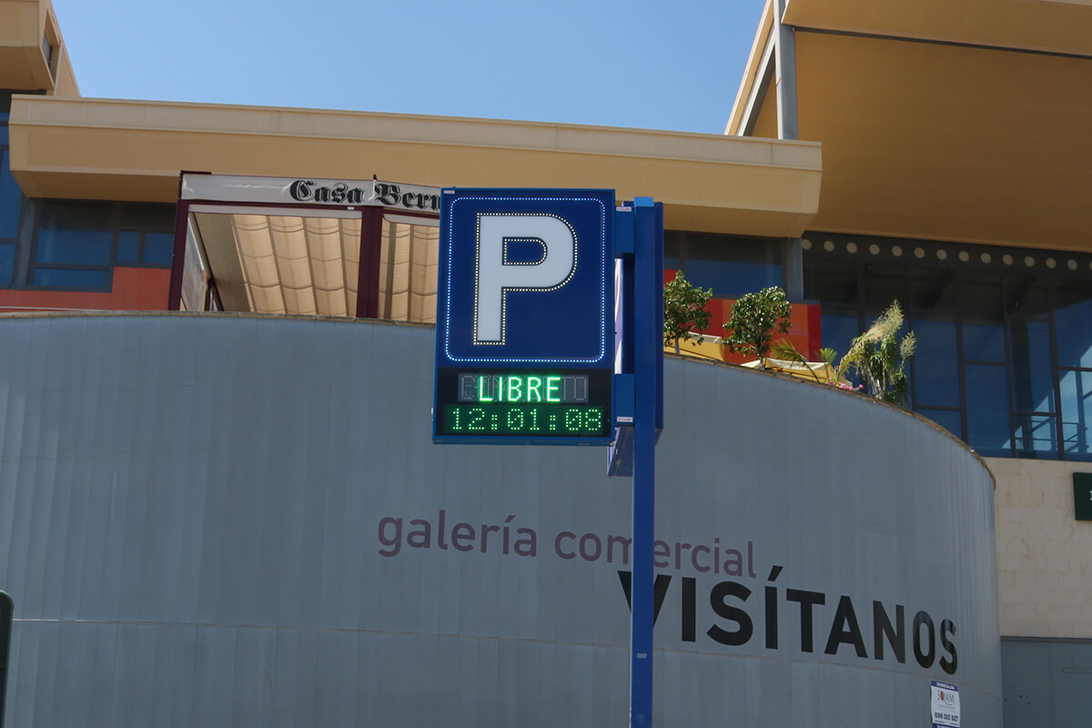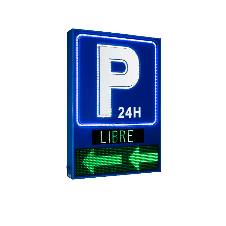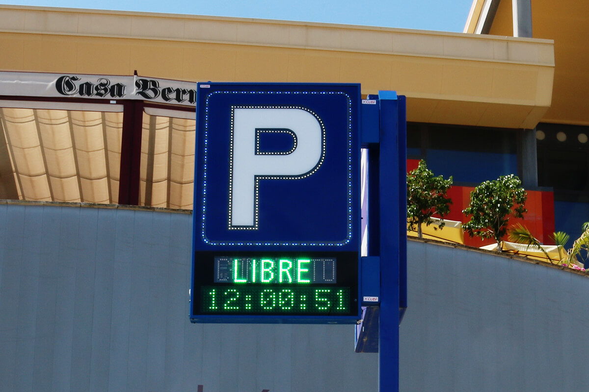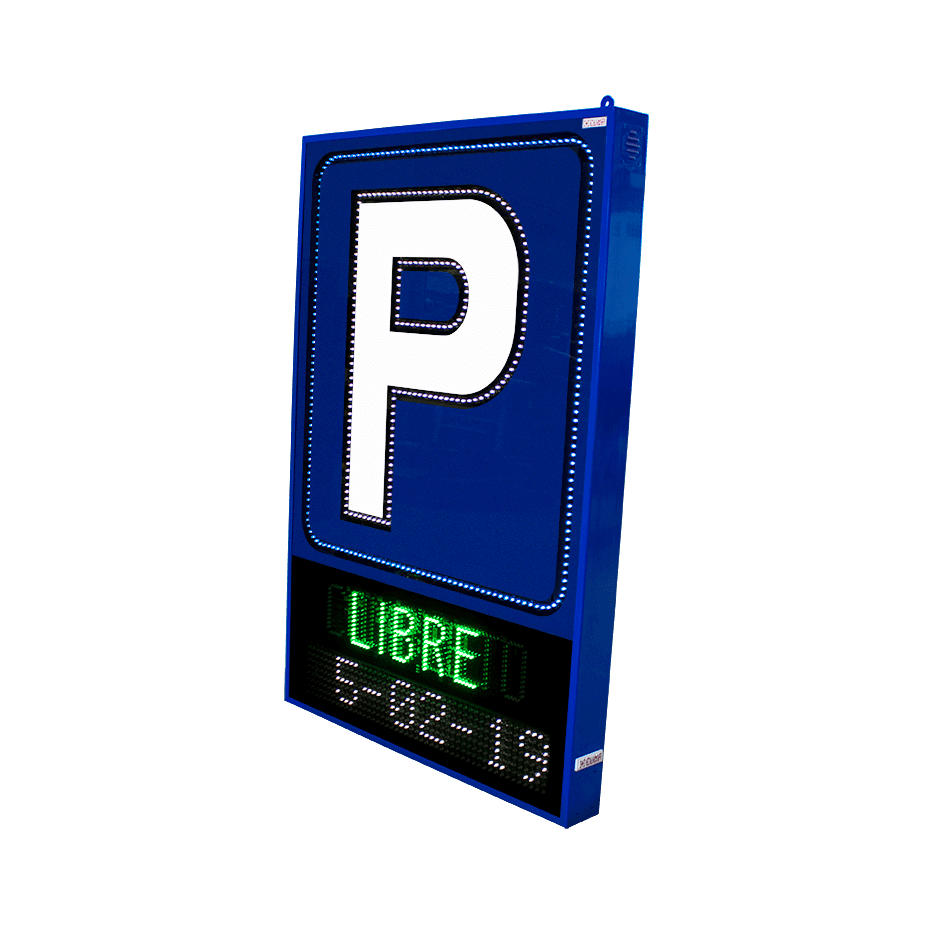 El aparcamiento de la galería comercial del hospital más reconocido de la Región de Murcia amplió su señalización instalando una banderola con la P perfilada más dos pequeñas pantallas LED: una para indicar el libre/completo de sus plazas y otra extra para informar a sus clientes sobre cualquier mensaje que quieran emitir. O simplemente para ofrecer la hora, la fecha o la temperatura.