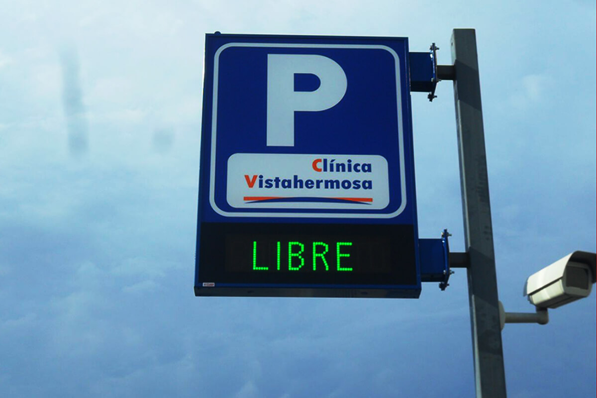 La Clínica Vistahermosa nos solicitó una banderola retroiluminada con pantalla LED de Libre|Completo para comunicar a sus clientes la disponibilidad o no de aparcamiento en sus instalaciones, pudiendo así gestionar de la manera más eficiente la afluencia de vehículos.