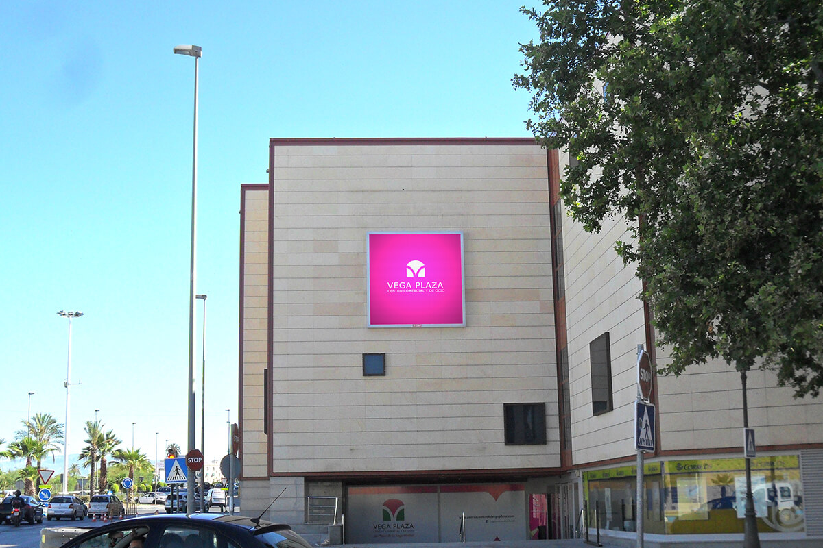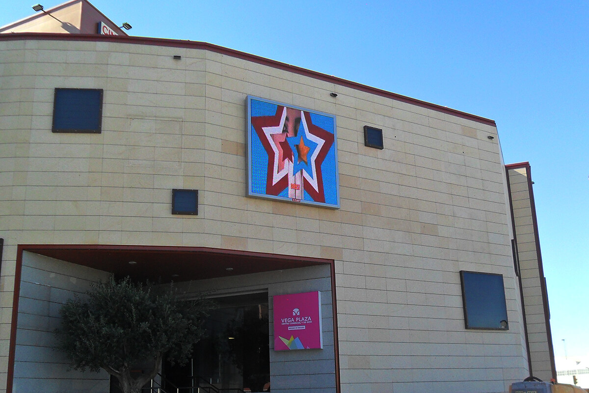 Fabricación, instalación y puesta en marcha de dos pantallas LED outdoor p10 de alta visibilidad y gran luminosidad desde largas distancias. En este caso, el centro comercial Vega Plaza (Molina de Segura) buscaba captar la atención de viandantes y conductores mediante la gestión, promoción y difusión del atractivo contenido multimedia que les facilitaban sus múltiples clientes. Un proyecto exitoso que terminó siendo rentable en muy pocos meses.