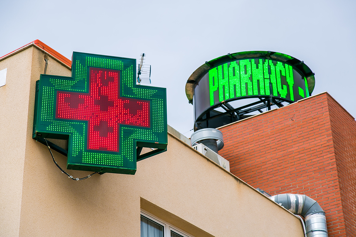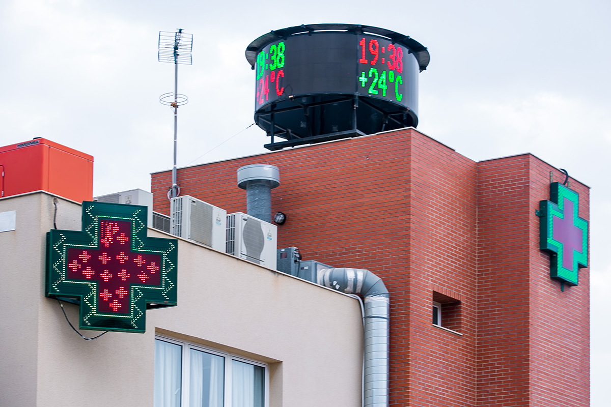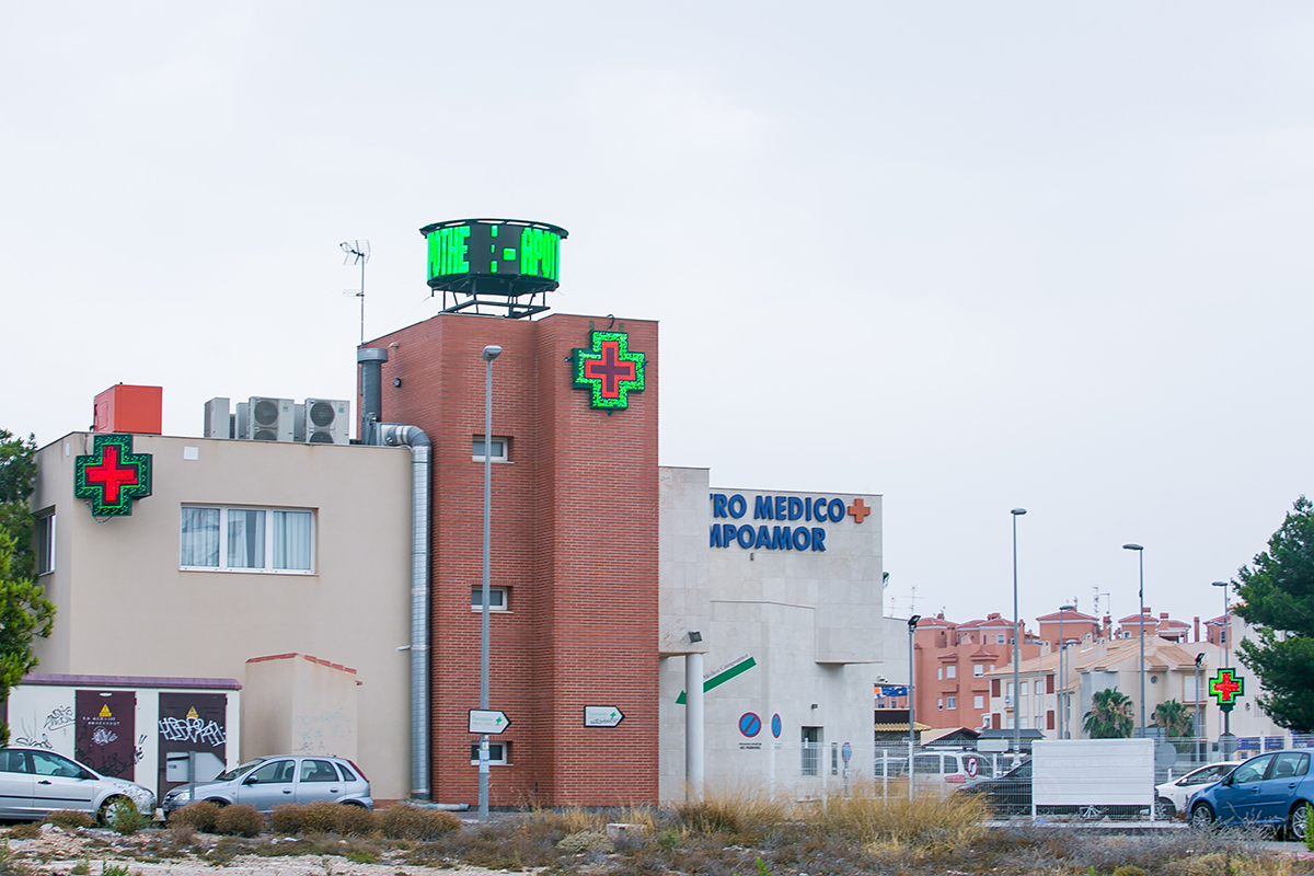 Una de las farmacias más emblemáticas de la costa murciana instaló en su fachada y alrededores una gran variedad de productos LED para señalizar -y de qué manera- su local. Así, se decantó por un total de 5 cruces de farmacia, una pantalla LED circular realizada totalmente a medida, unas letras corpóreas, 2 rótulos especiales con forma de flecha y una pantalla de texto LED.