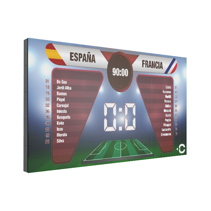 Con unas grandiosas medidas de 2,56 metros de ancho por 1,44 metros de alto, este vídeo marcador LED , que tantas alegrías les ha brindado a los albinegros, se ha convertido en su mejor aliado para cada partido. Su píxel de 20mm ha conseguido un visionado perfecto desde cualquier zona del campo y su alta luminosidad ha logrado retransmitir el partido incluso bajo las condiciones atmosféricas más hostiles. Además de los anuncios publicitarios audiovisuales, el resultado y el tiempo de juego, el vídeo marcador permite visualizar la señal televisiva de los minutos previos al comienzo del partido.